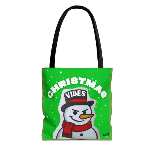 Christmas Vibes Snowman Tote Bag - Festive Holiday Reusable Shopper