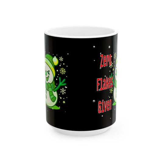 Funny Christmas Snowman Mug – "Zero Flakes Given" Holiday Coffee Cup (11oz, 15oz)