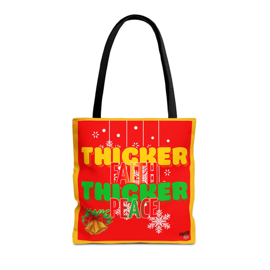 “Thicker Faith Thicker Peace” Tote Bag – Inspirational Christmas Shopper, Reusable Holiday Gift Tote & Everyday Carry Bag
