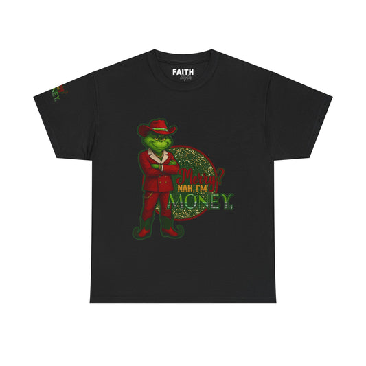 Grinch Inspired in Red Suit Tee — "Nah, I’m Money" Christmas Graphic T-Shirt