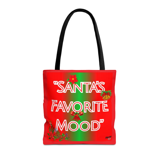 Christmas Tote Bag — "Santa's Favorite Mood" Holiday Shopping Bag