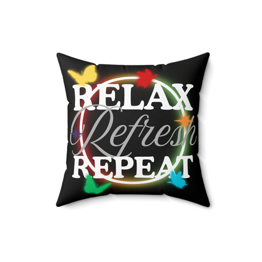 FaithStyles Relax Refresh Repeat Pillow, Cozy Home Decor, Gift for Relaxation, Colorful Throw Cushion, Self-Care Gift Idea, Modern Accent Pillow