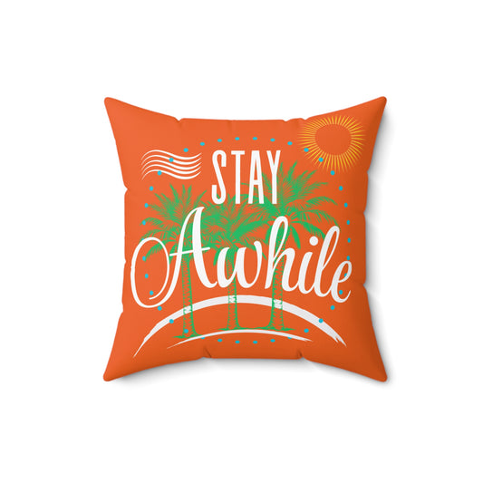 FaithStyles Autumn Tropical Stay Awhile Pillow, Beach Decor, Summer Vibes, Cozy Home Accent, Gift for Beach Lovers, Relaxation Decor