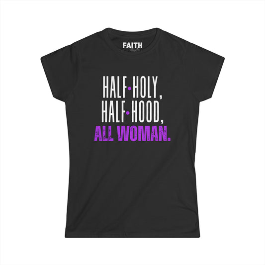 Empowering Women's Softstyle Tee - Half Holy, Half Hood, All Woman | Casual Wear, Gift for Her, Spiritual Apparel, Self-Love, Everyday [...]
