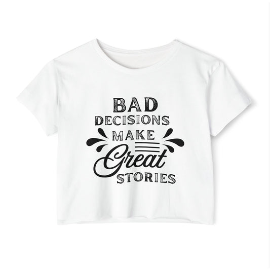 Women's Festival Crop Top - Bad Decisions Make Great Stories, Summer Fashion, Party Wear, Music Festival Tee, Trendy Casual Top