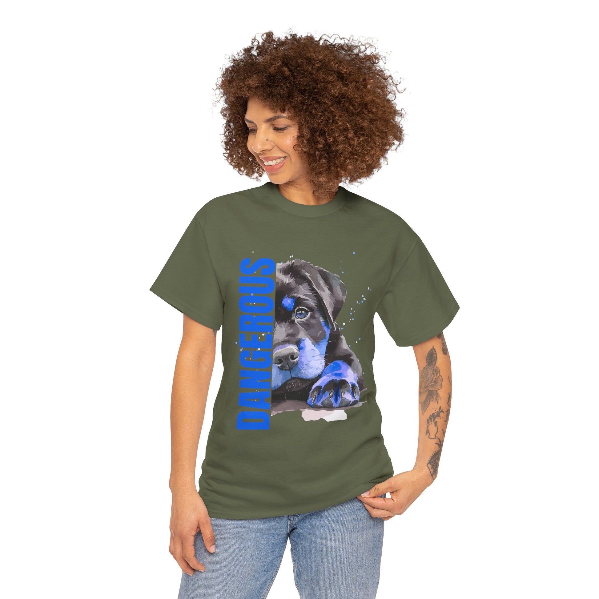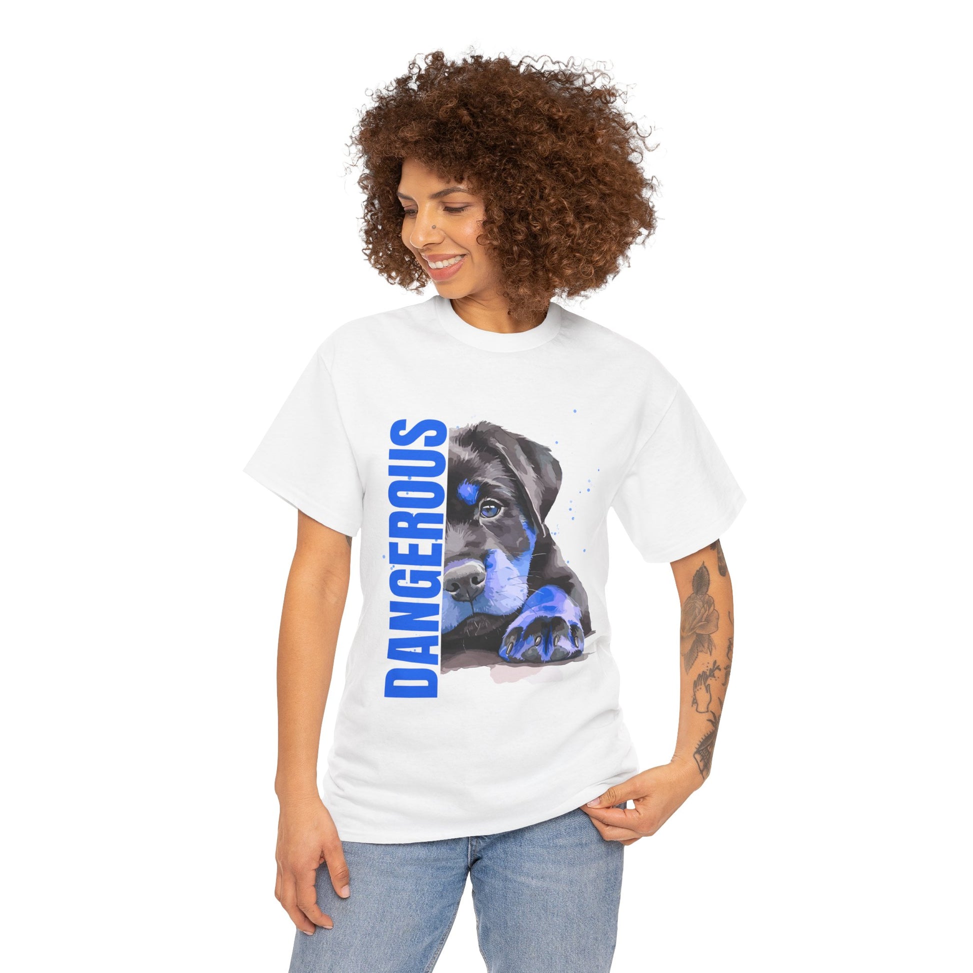"'DANGEROUS" Cool Dog Lover Tee - Unisex Heavy Cotton T-Shirt
