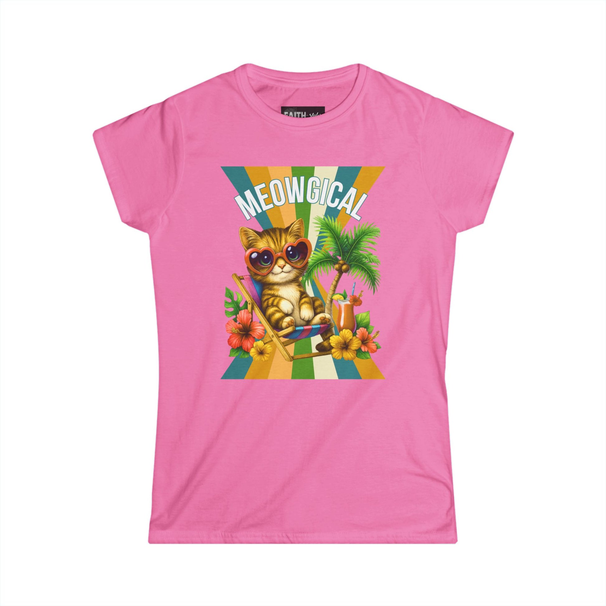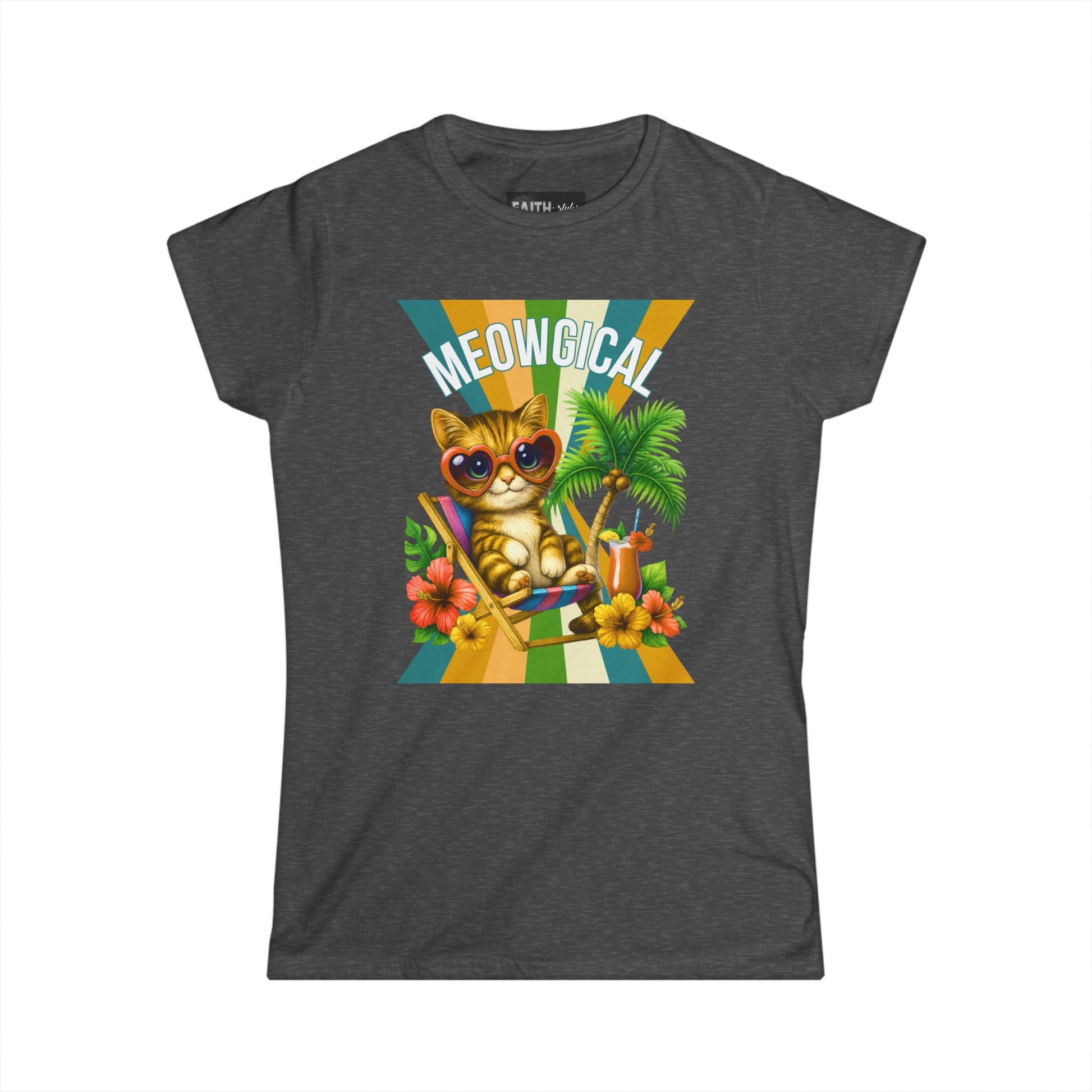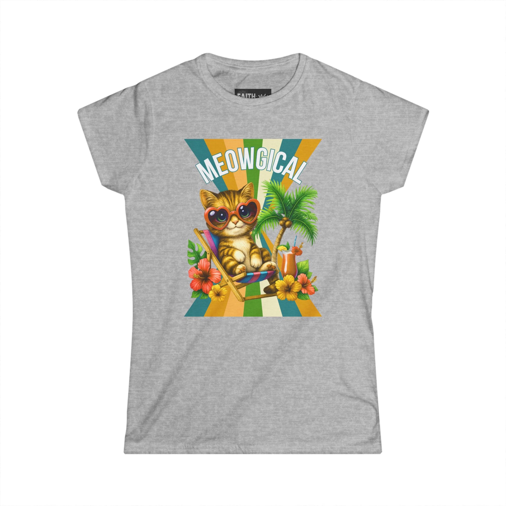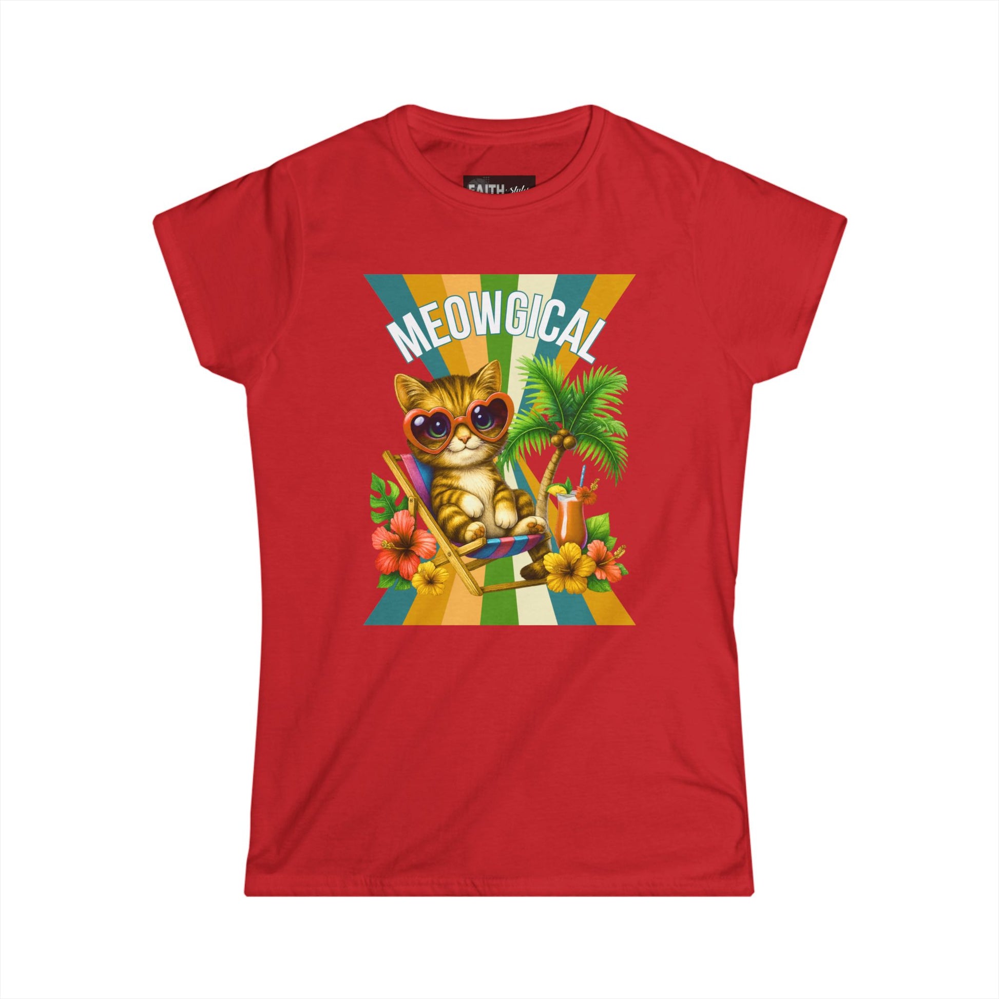 Introducing a delightful Women's Softstyle Tee that brings a splash of fun and whimsy to your wardrobe. This tee features a cheerful graphic of a trendy cat lounging in paradise, perfect for cat lovers and those who appreciate a playful vibe. Crafted from soft, lightweight fabric, it provides all-day comfort, making it an ideal choice for casual outings, weekend brunches, or lounging at home. Imagine wearing this tee during summer picnics, beach trips, or simply relaxing with friends—it radiates joy and lightheartedness. This product is a fantastic gift for birthdays, holidays, or just to brighten someone’s day! Whether you're celebrating Cat Day or the arrival of warmer weather, this tee is sure to elevate your spirit and outfits alike.