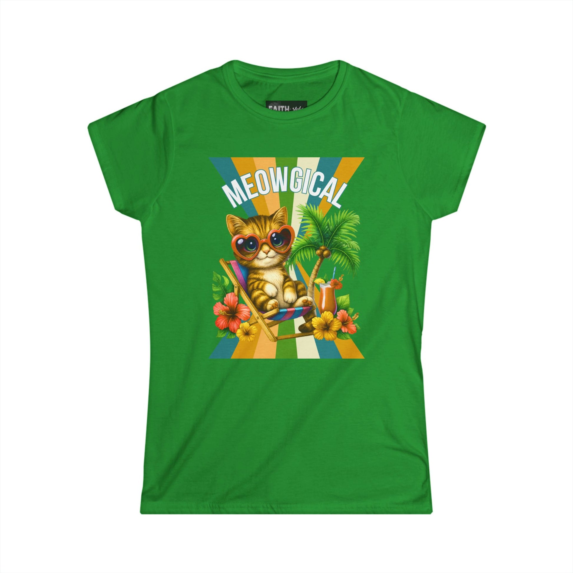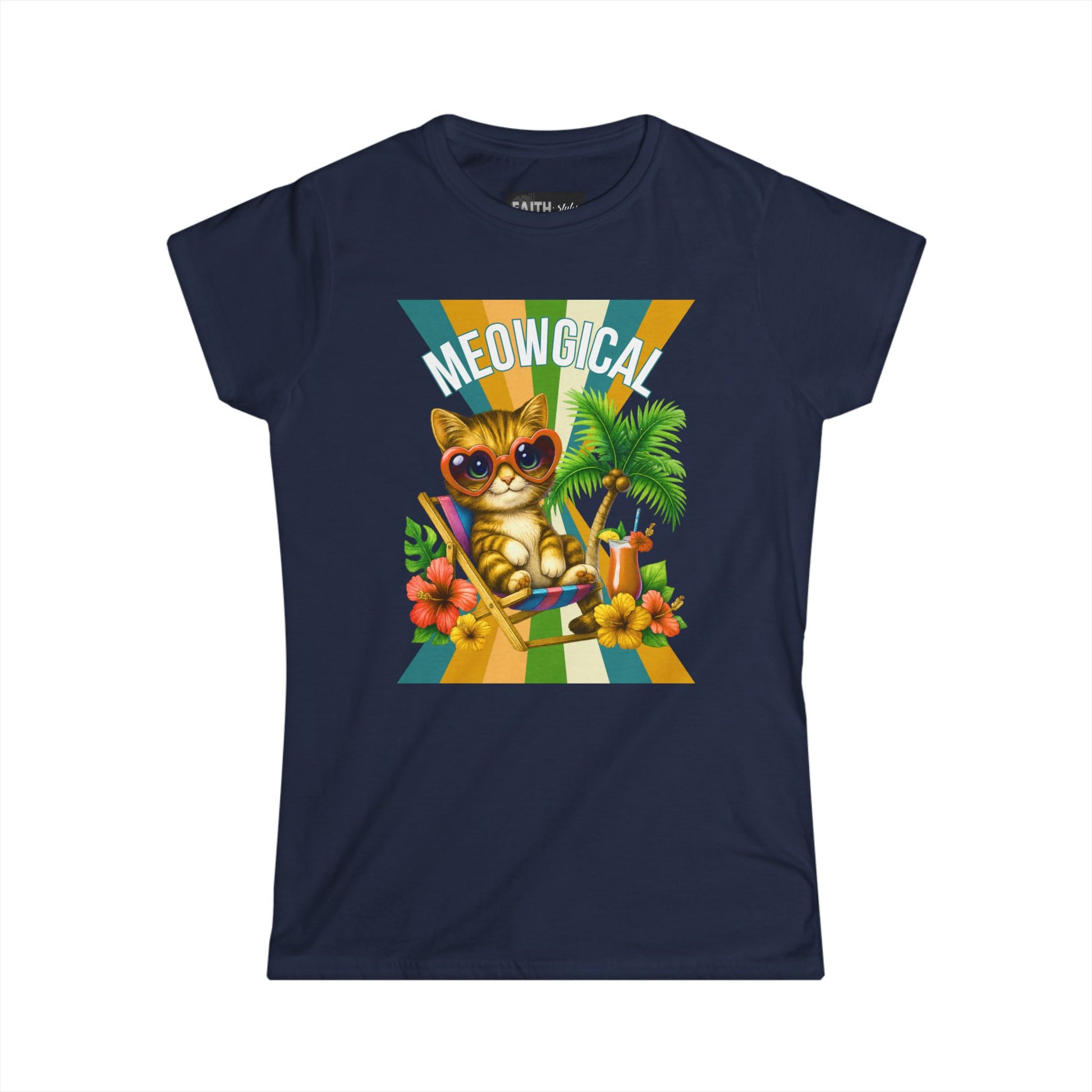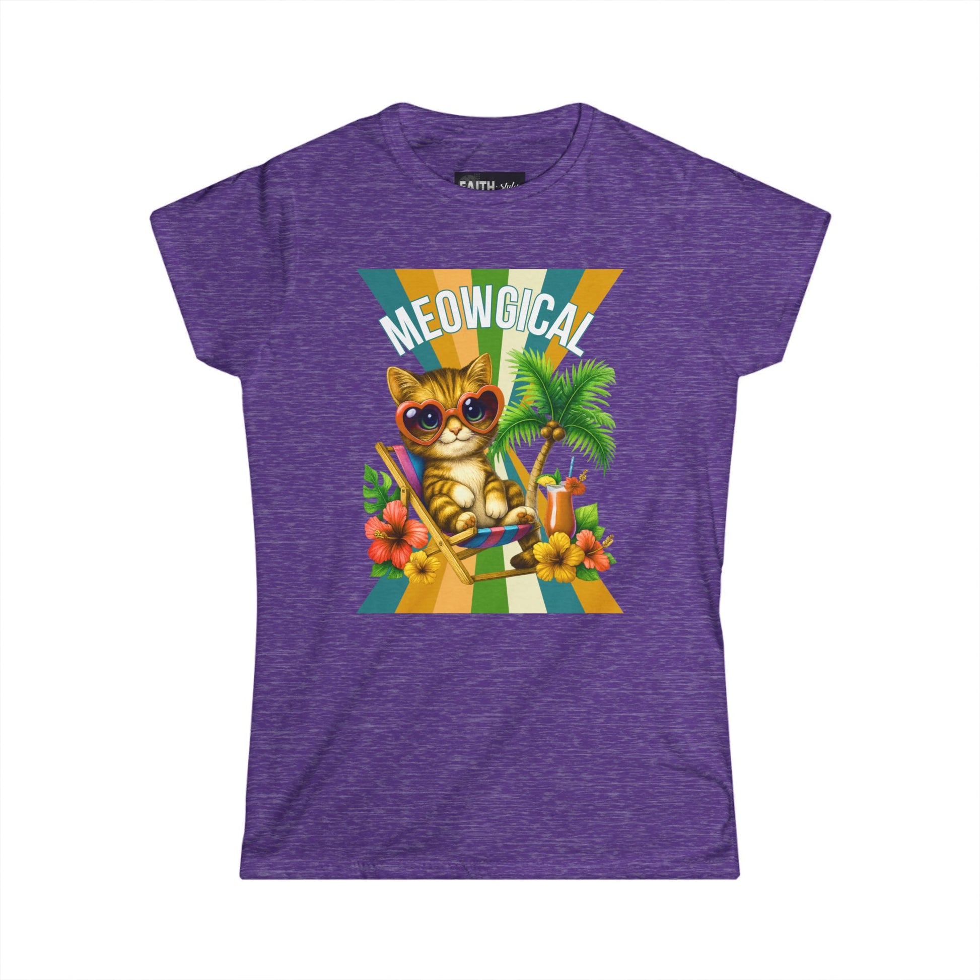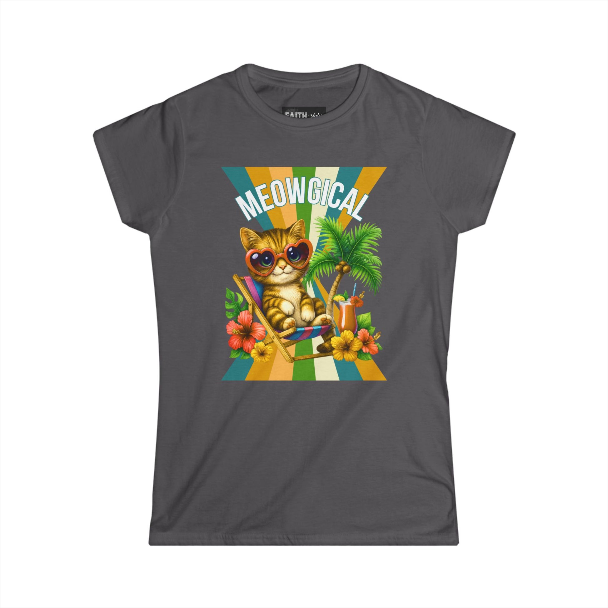 Introducing a delightful Women's Softstyle Tee that brings a splash of fun and whimsy to your wardrobe. This tee features a cheerful graphic of a trendy cat lounging in paradise, perfect for cat lovers and those who appreciate a playful vibe. Crafted from soft, lightweight fabric, it provides all-day comfort, making it an ideal choice for casual outings, weekend brunches, or lounging at home. Imagine wearing this tee during summer picnics, beach trips, or simply relaxing with friends—it radiates joy and lightheartedness. This product is a fantastic gift for birthdays, holidays, or just to brighten someone’s day! Whether you're celebrating Cat Day or the arrival of warmer weather, this tee is sure to elevate your spirit and outfits alike.