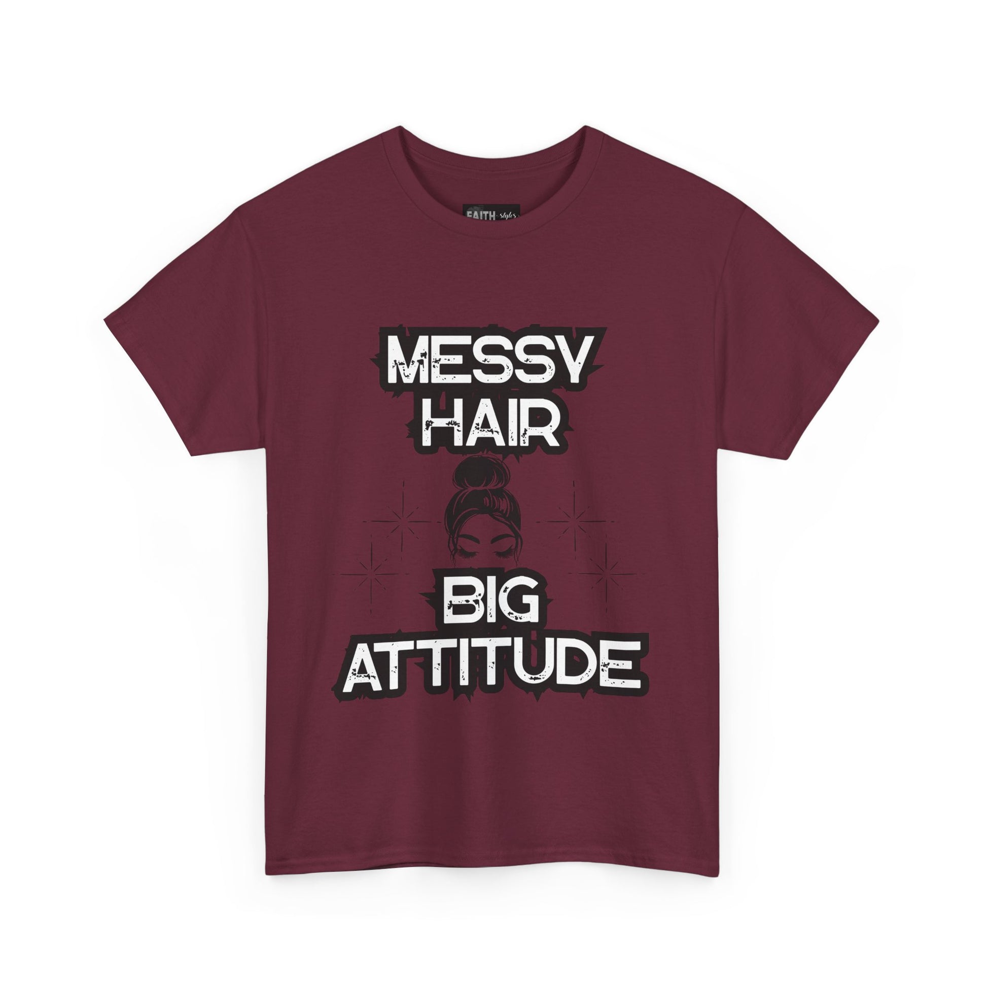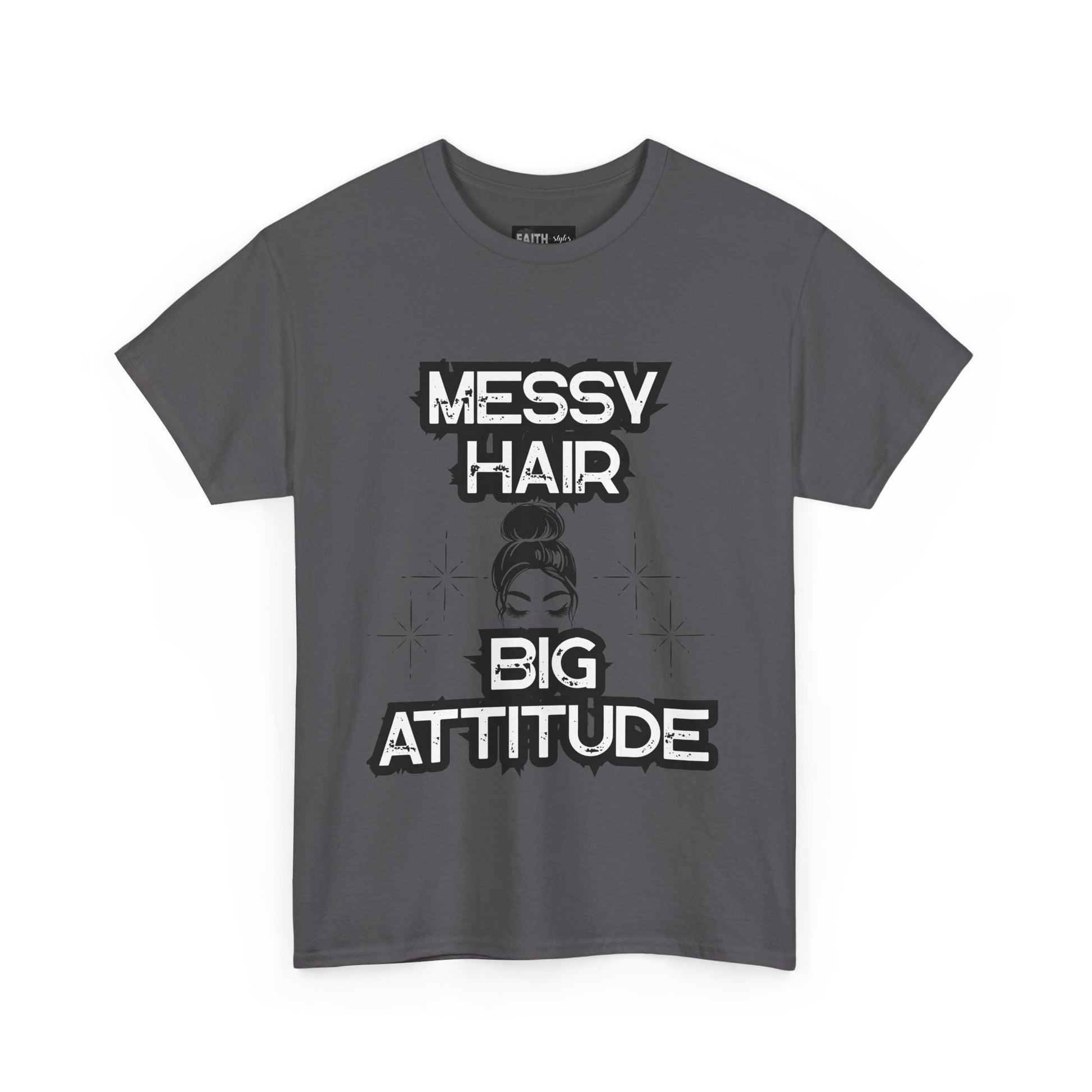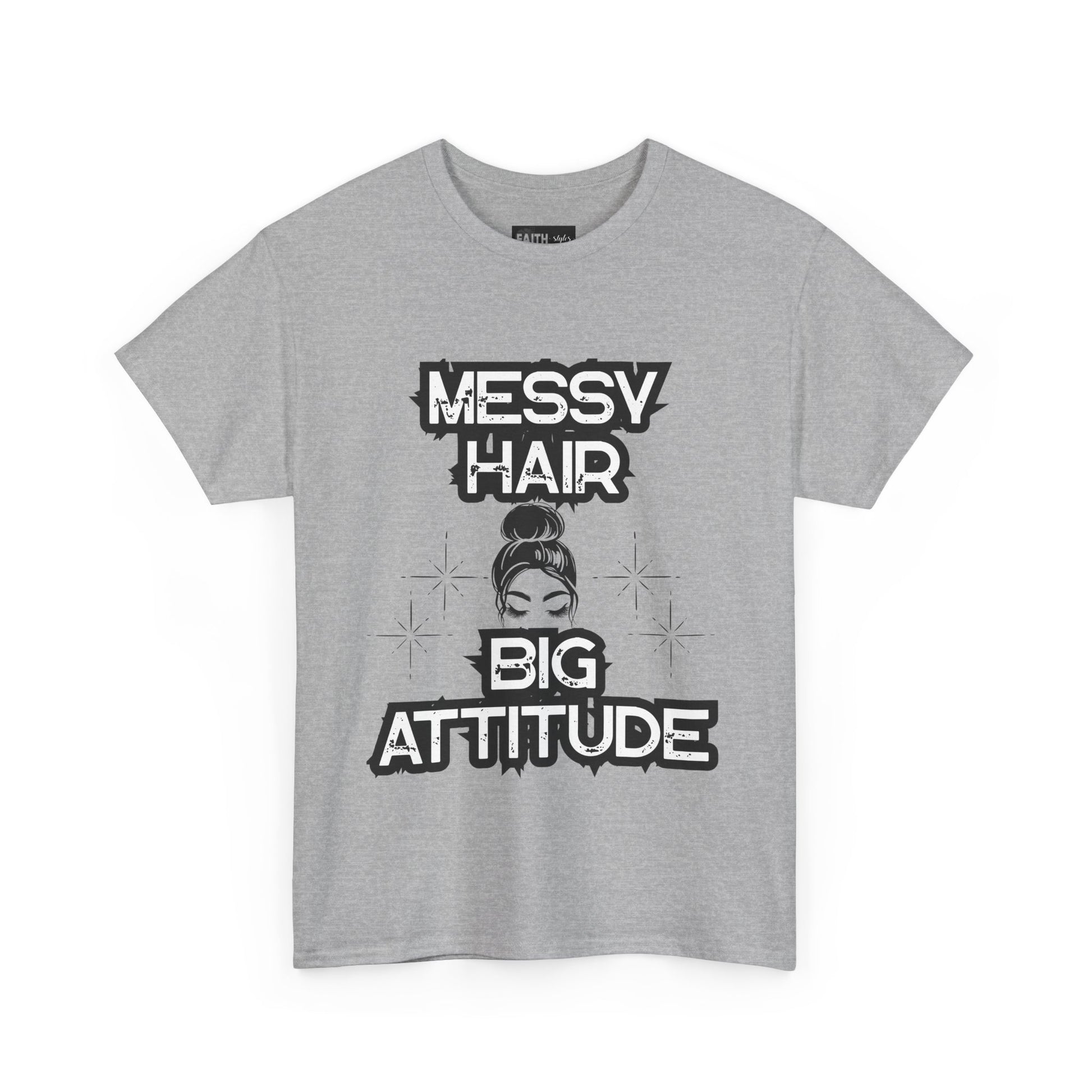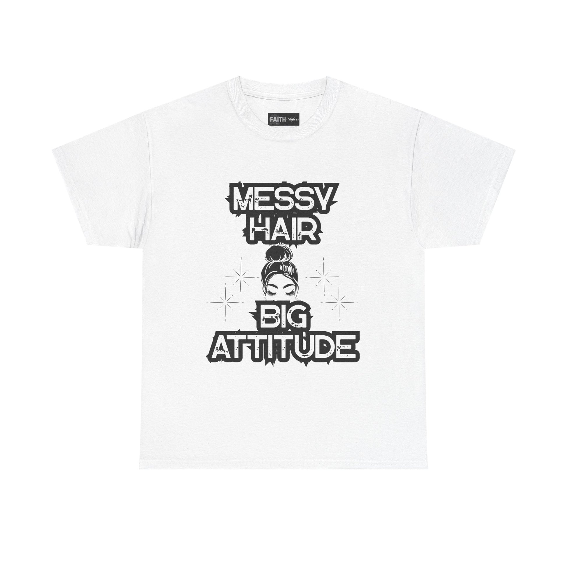 Messy Hair Big Attitude Tee | Stylish Graphic T-Shirt for Casual Wear, Gifts, Everyday Fashion, Relaxed Fit Tee