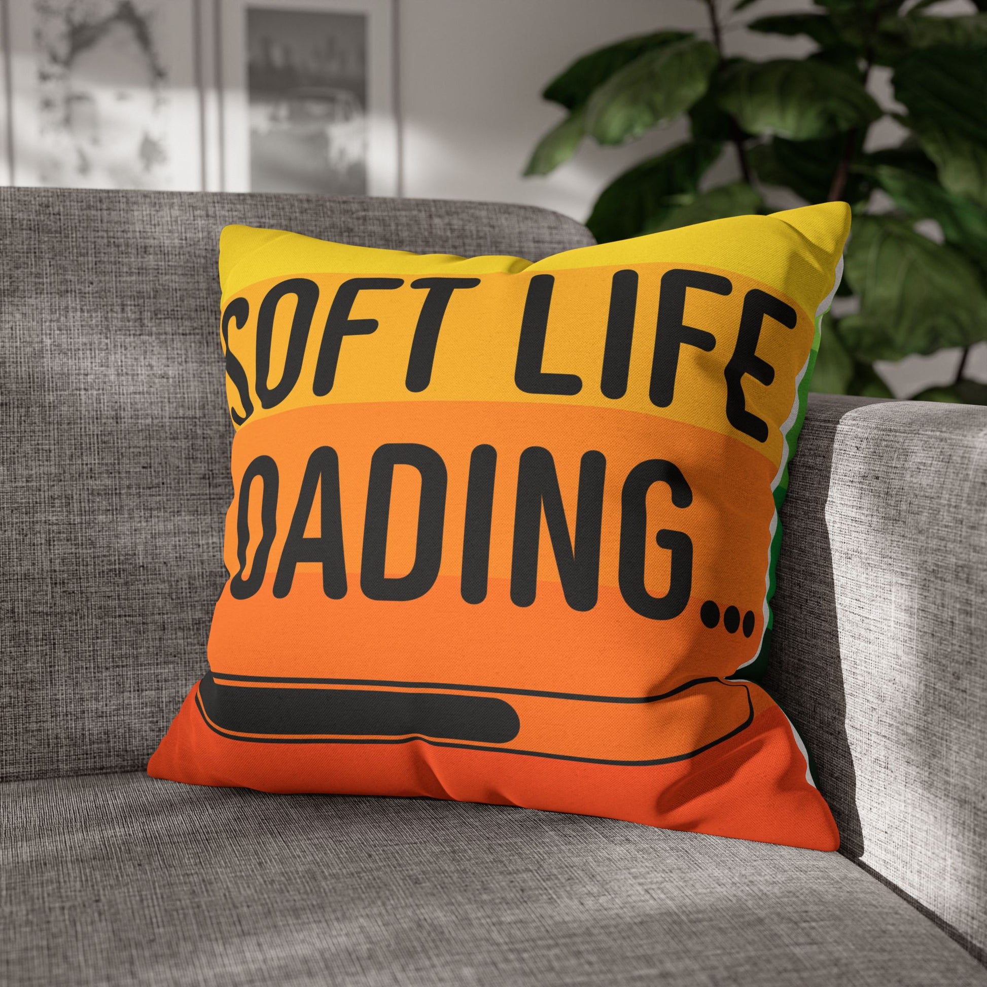 Soft Life Loading Decorative Pillowcase, Cozy Home Decor, Inspirational Gift, Living Room Accessory, Fun and Whimsical Cushion
