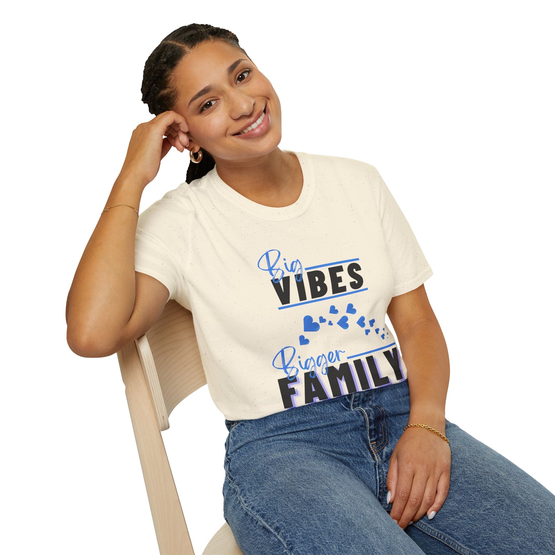 Introducing our Unisex Softstyle T-Shirt, designed to embrace positivity and connection. This t-shirt radiates good vibes with its uplifting message, making it a perfect choice for family gatherings, casual outings, or simply lounging at home. Its soft fabric ensures comfort throughout the day, making it suitable for all seasons. Ideal for anyone who values family bonds and a laid-back lifestyle, this shirt serves as a gentle reminder to cherish those moments. Great for holidays, birthdays, or any occasion where love and togetherness are celebrated. Pair it with jeans for a casual day out or with cozy lounge pants for a relaxed evening in!